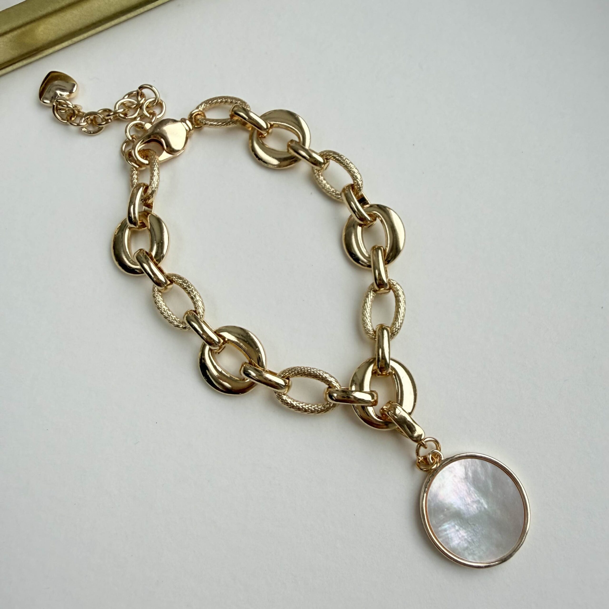 Браслет с круглой подвеской из перламутра — утончённый акцент с мягким сиянием и выразительной фактурой.