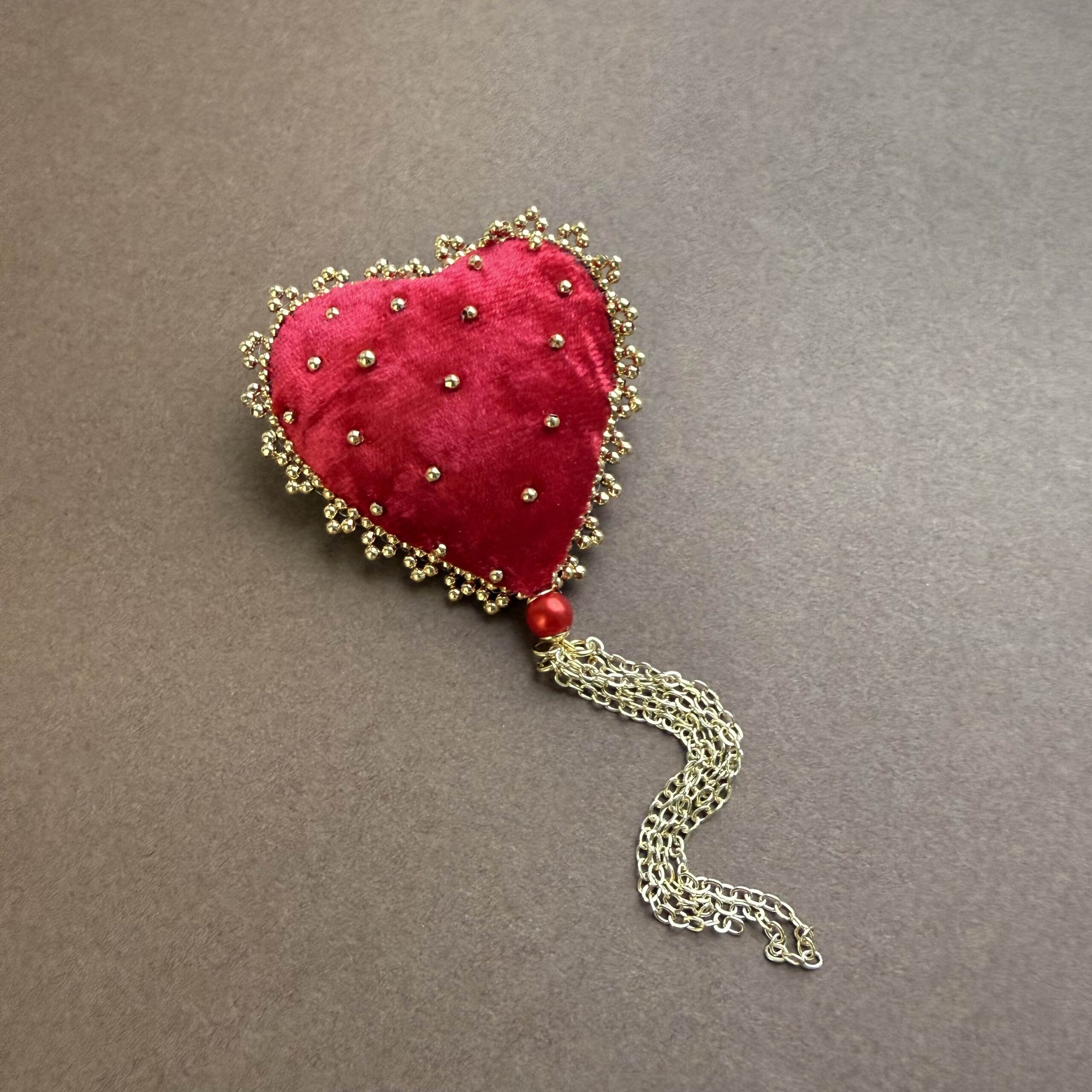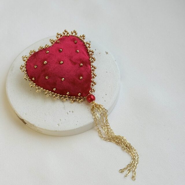 Эта элегантная брошь создана для тех, кто любит изысканные детали и украшения с характером. Мягкая бархатная текстура в форме сердца делает аксессуар по-настоящему теплым, уютным и выразительным.
