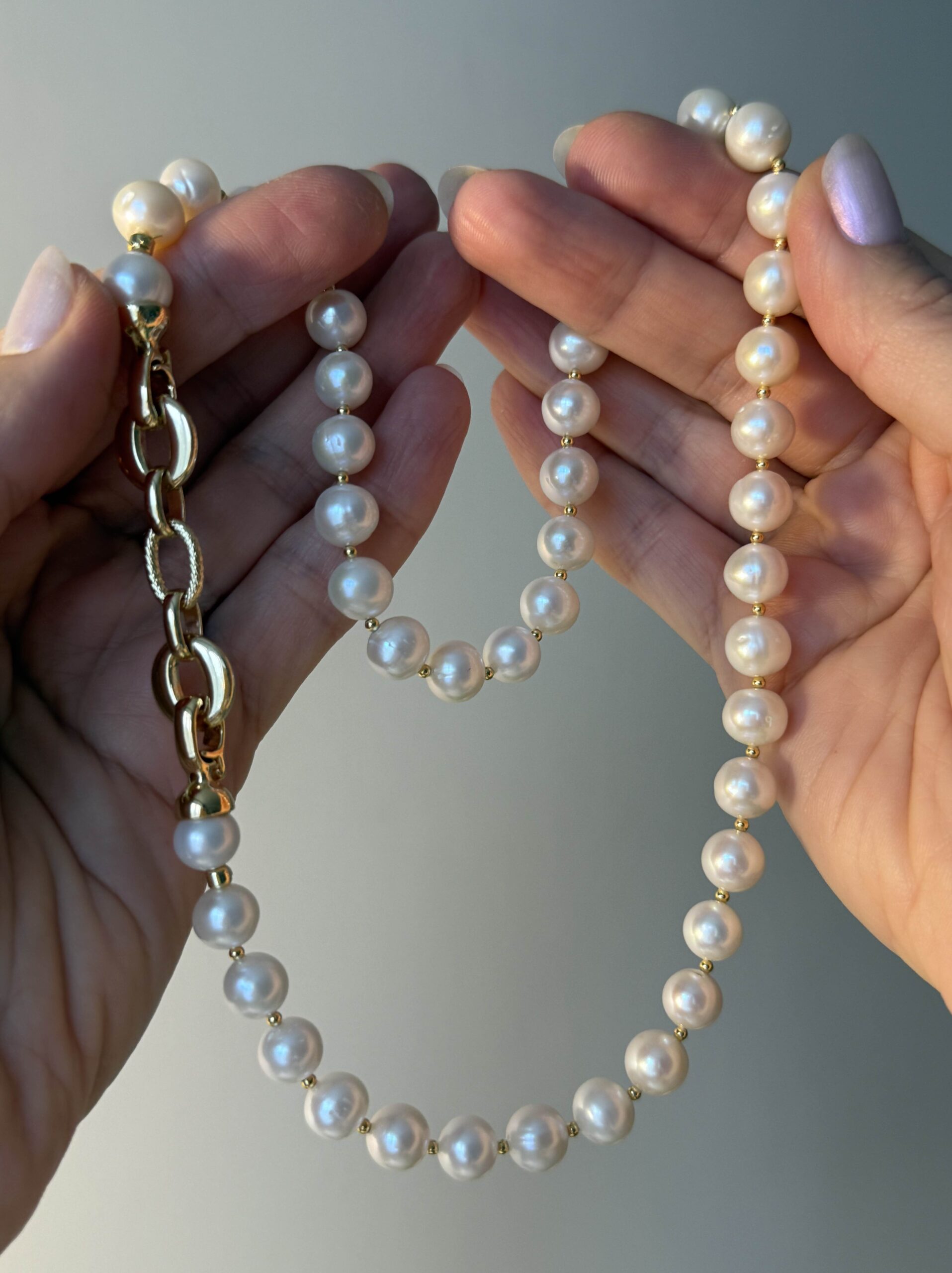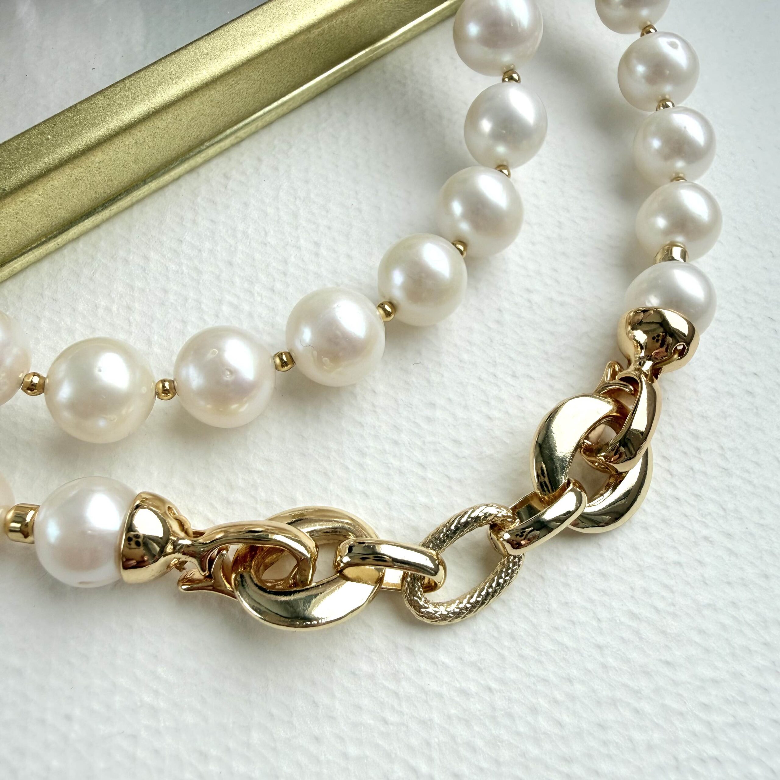 Идеальный ровный жемчуг диаметром 10-11мм.