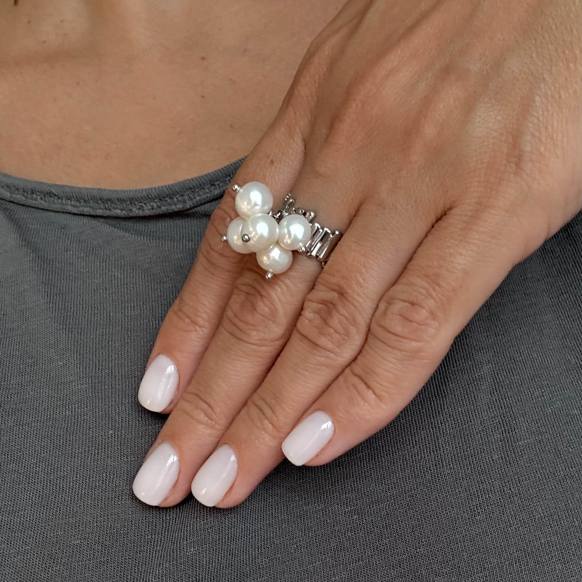 Выразительное кольцо с рифленым изготовлением и утонченными жемчужинами – идеальный выбор для тех, кто ценит стиль и изысканность. Родиевое покрытие основы кольца с благородным блеском, крупные жемчужины создают эффектный акцент.