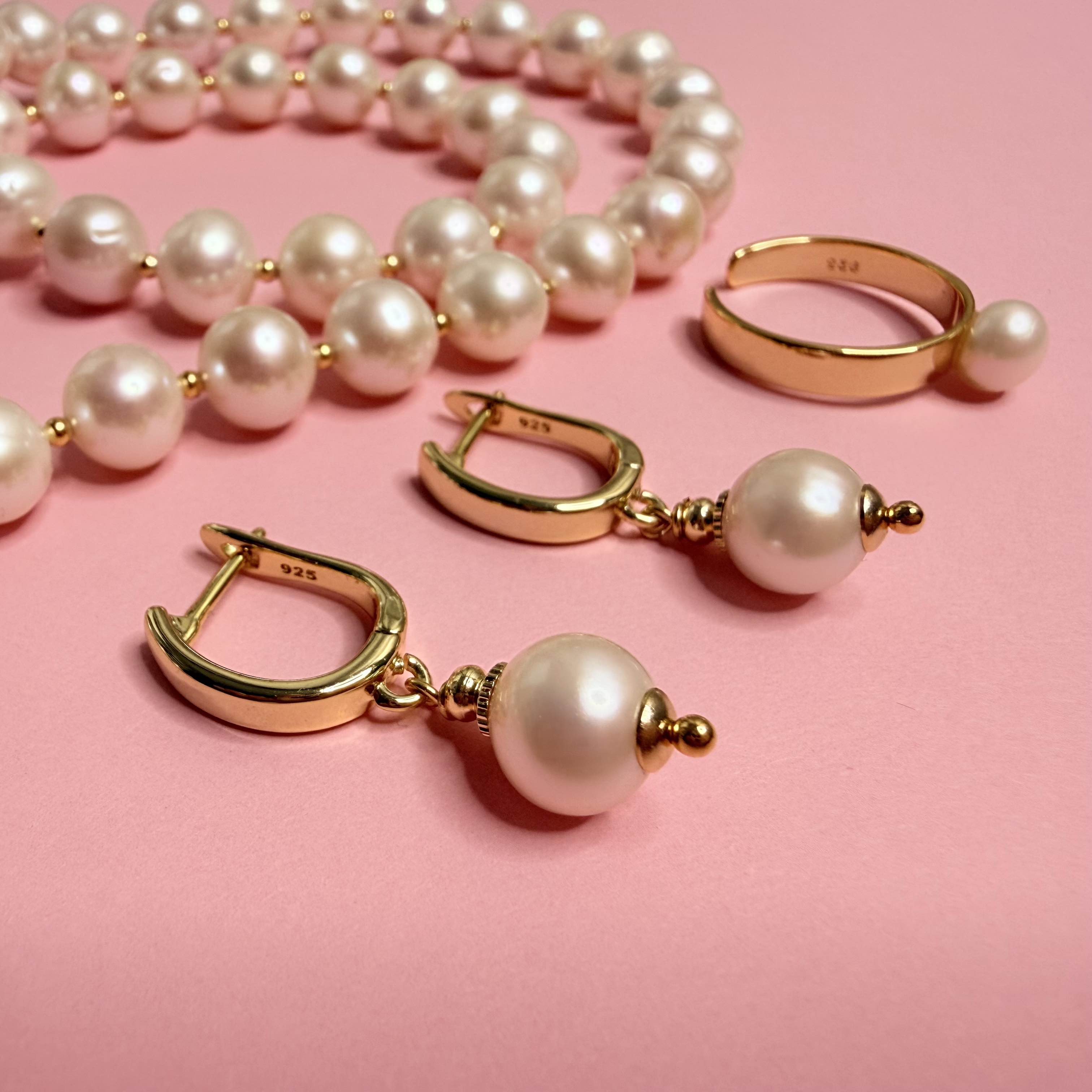 «Чистое сияние» так я назвала этот комплект, в котором нет ничего лишнего, только мягкий блеск натурального жемчуга и тёплое блеск позолоченной фурнитуры.
