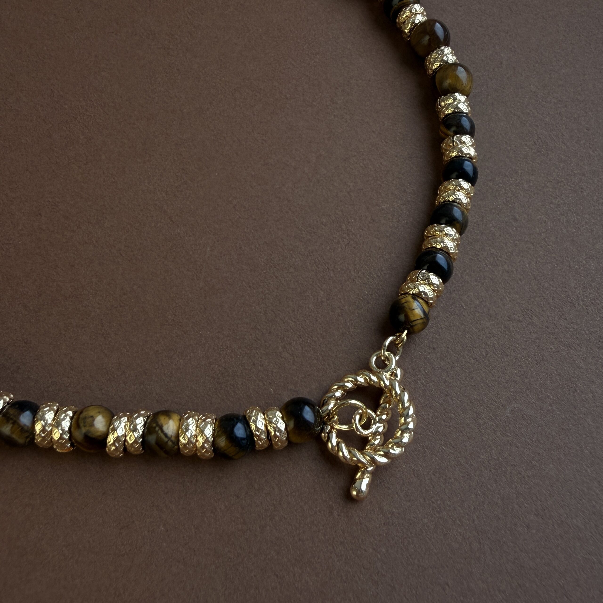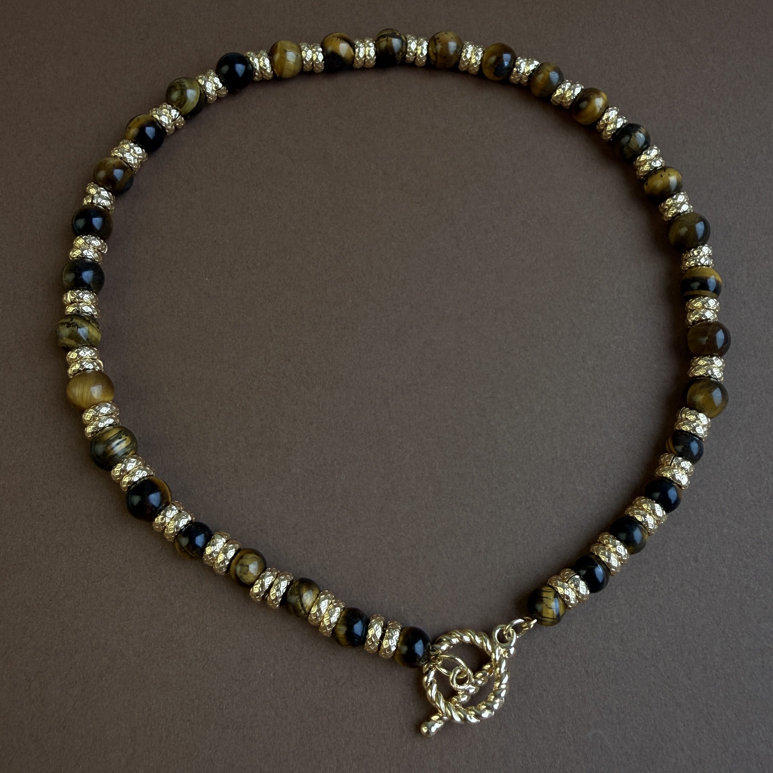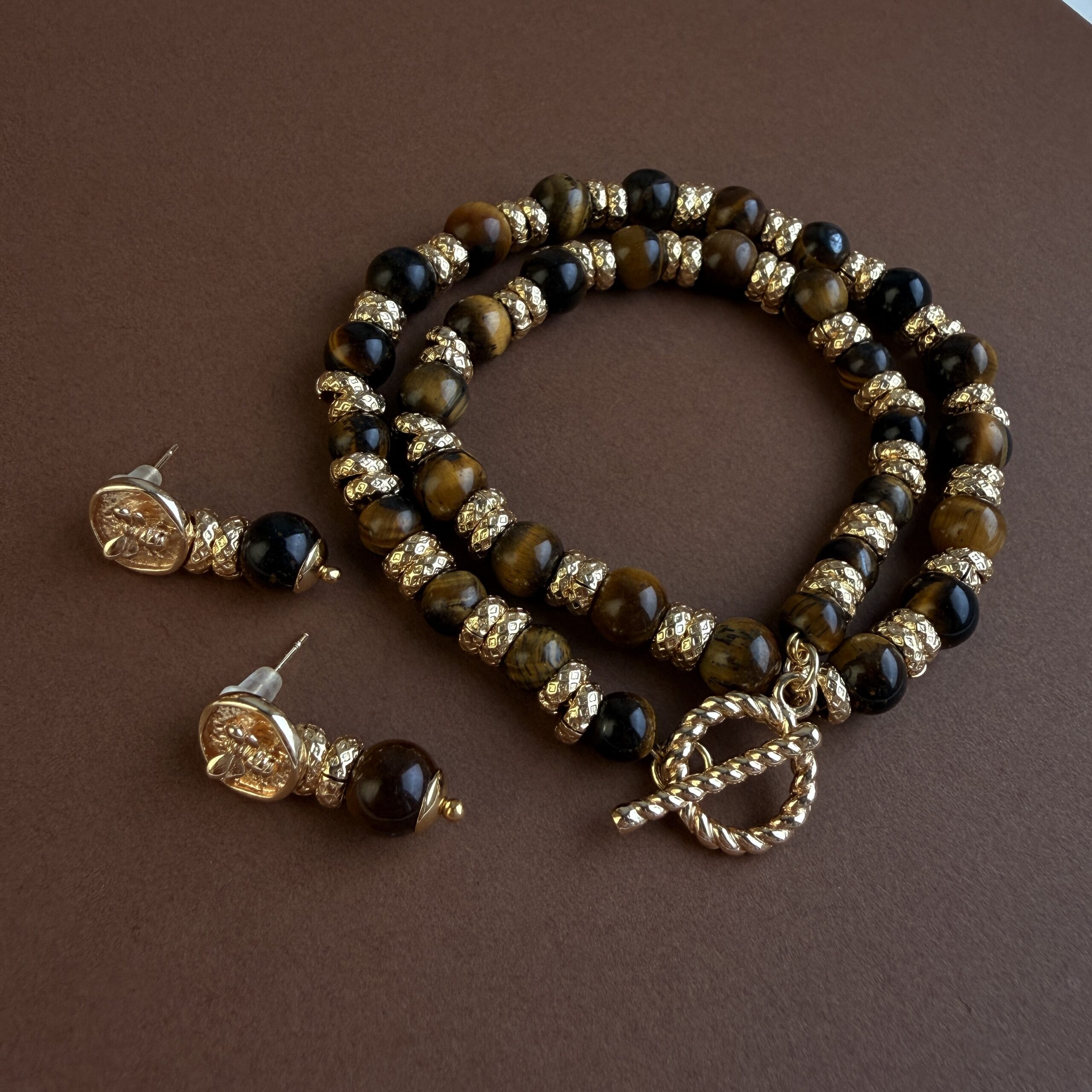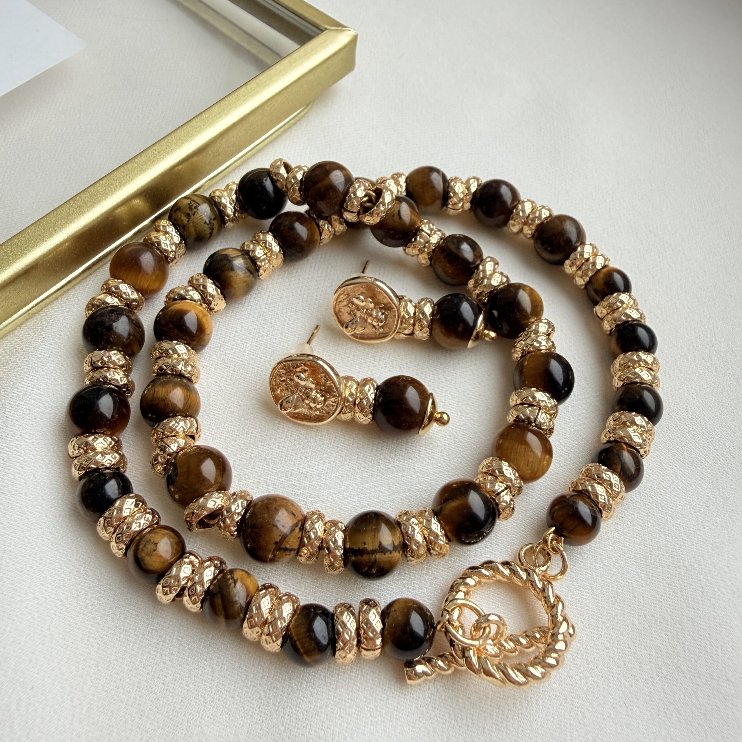Комплект с тигровым глазом, кропотливая сборка на пинах — гармония природы и изысканности в каждом штрихе.