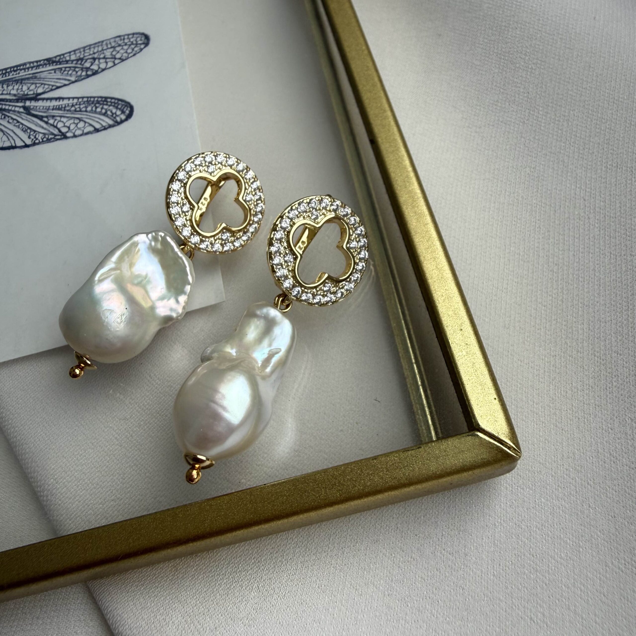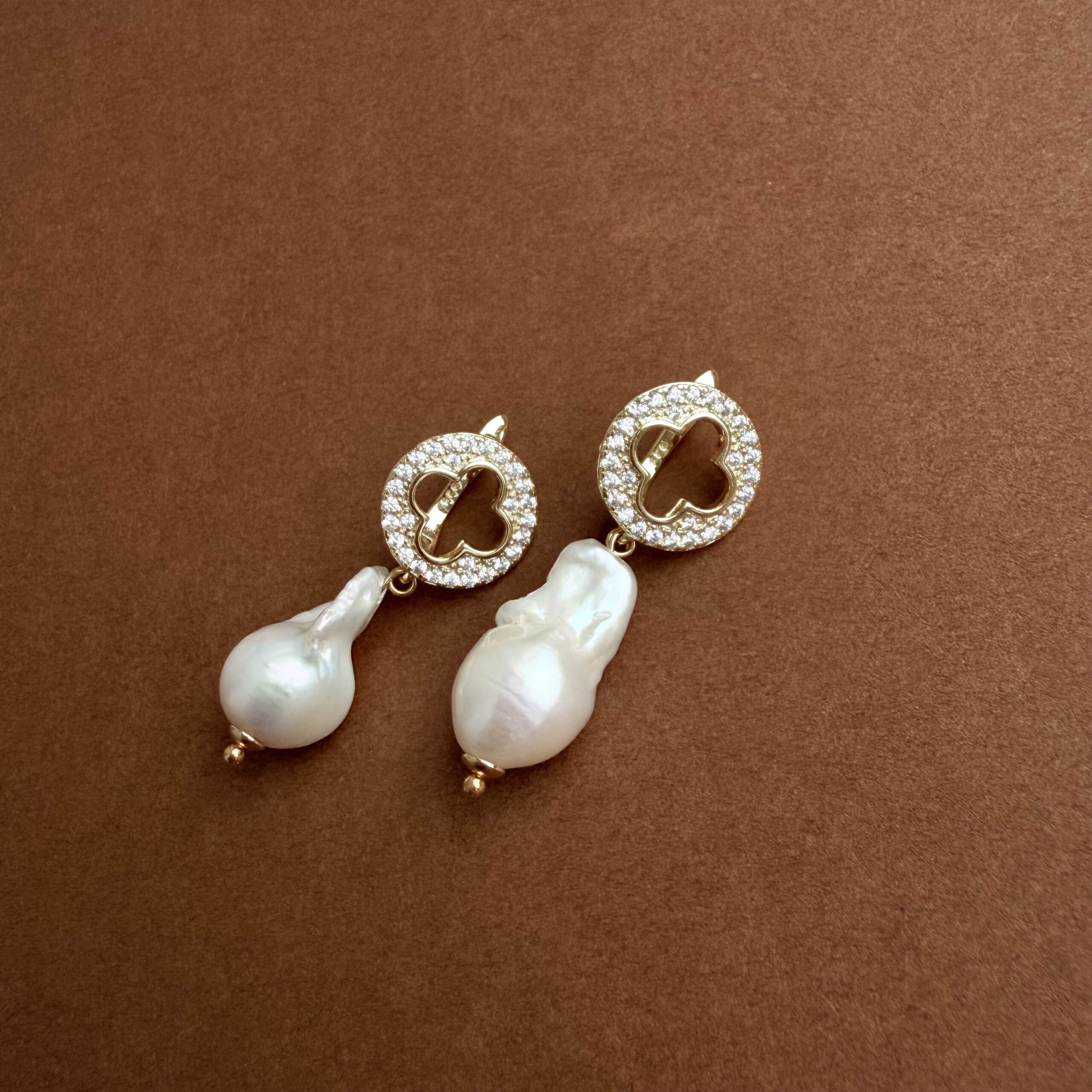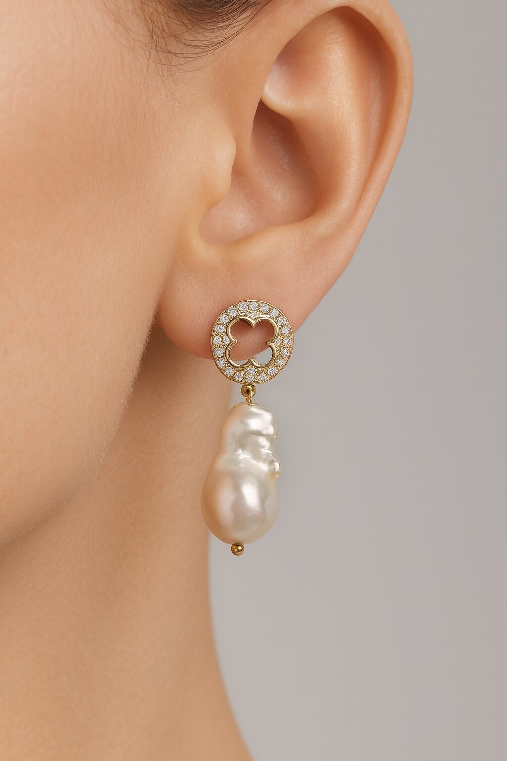 Серьги с фианитами и барочным жемчугом — это сочетание изящного блеска и природной органичности.
