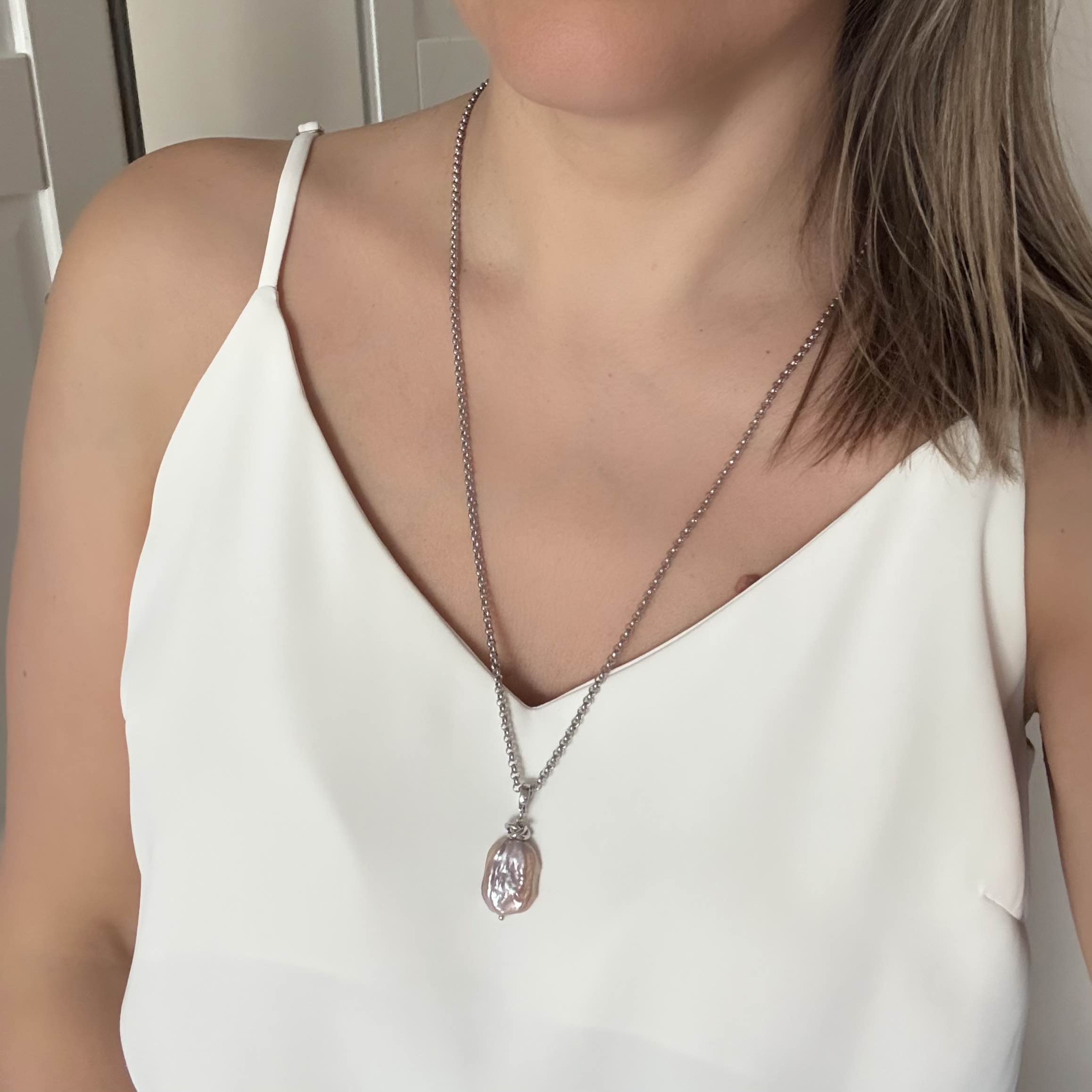 Цепь с подвеской из барочного жемчуга «Розалия» — лаконичное украшение с выразительным акцентом.